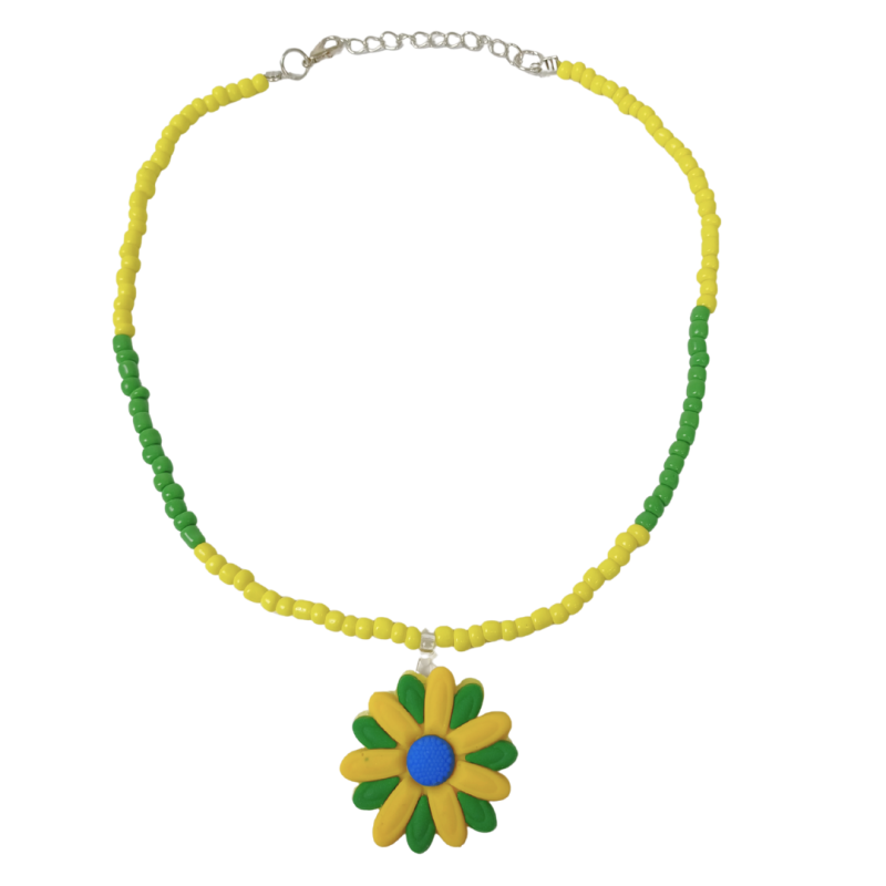 COLAR INFANTIL COPA BRASIL – PINGENTE FLOR COM MIÇANGAS! Encante-se com o Colar Infantil Copa Brasil. Pingente Flor com Miçangas, um acessório alegre e delicado, perfeito para meninas torcerem pelo Brasil em grande estilo. Produzido com miçangas inspiradas nas cores da bandeira do Brasil, verde e amarelo; o colar traz um lindo pingente de flor nas cores amarelo, verde e azul, que deixa a peça ainda mais charmosa e cheia de personalidade. Leve, colorido e cheio de encanto, é um acessório perfeito para complementar o look em dias de jogos, festas temáticas ou momentos especiais. Um modelo delicado que conquista meninas que amam acessórios divertidos e cheios de brilho. Ideal para presentear ou também para revenda, sendo uma peça encantadora que chama atenção pela combinação de cores e pelo seu estilo alegre inspirado no Brasil.